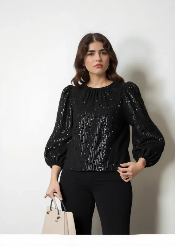₹700.00Black Sequin Balloon Sleeve Party Top