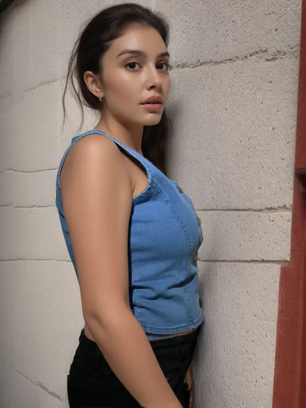 Classic Denim Crop Top – Blue – Button Down – Sleeveless