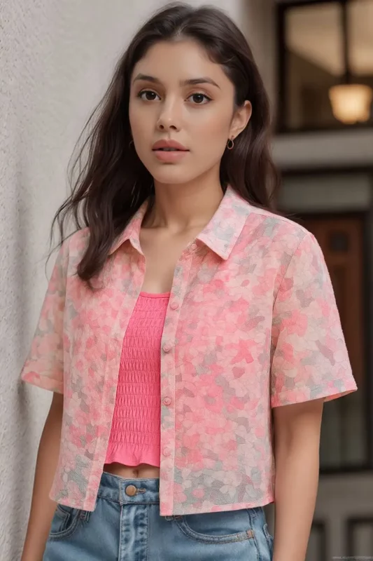 ₹450.00Sheer Pink Abstract Print Shirt with Inner Smocked Tube Top