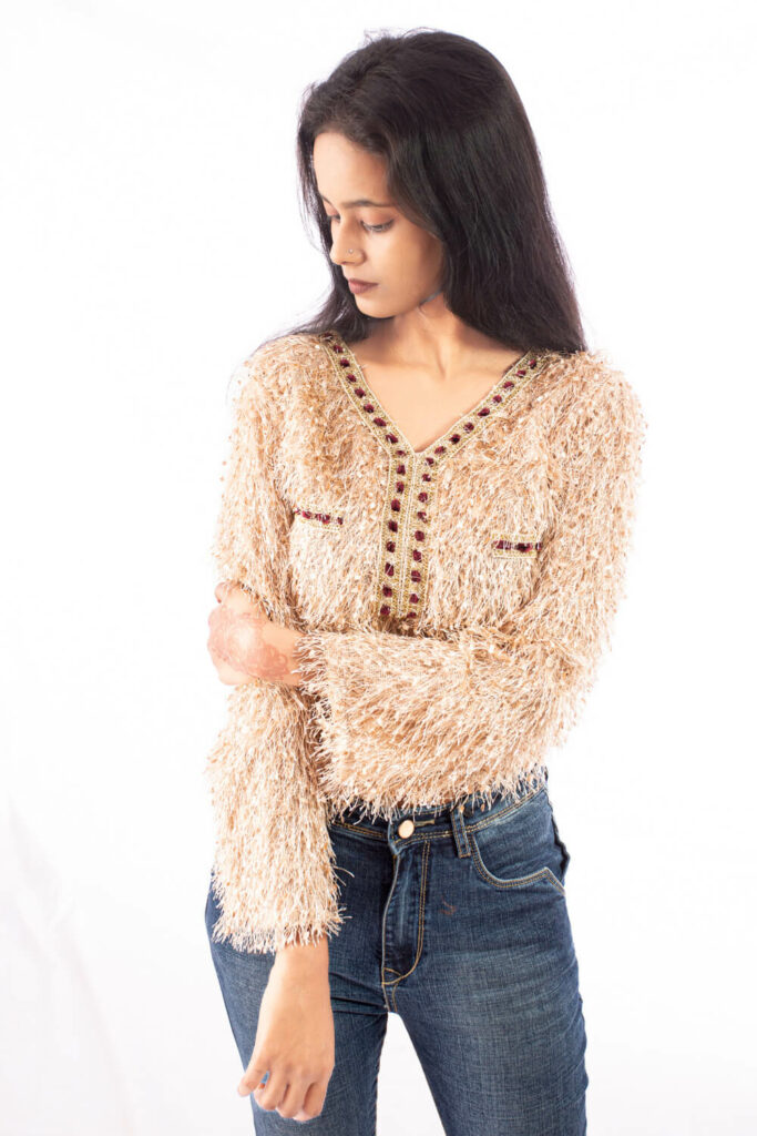 ₹1,599.00Amber Luxe Studded Cold-Shoulder Crop Top
