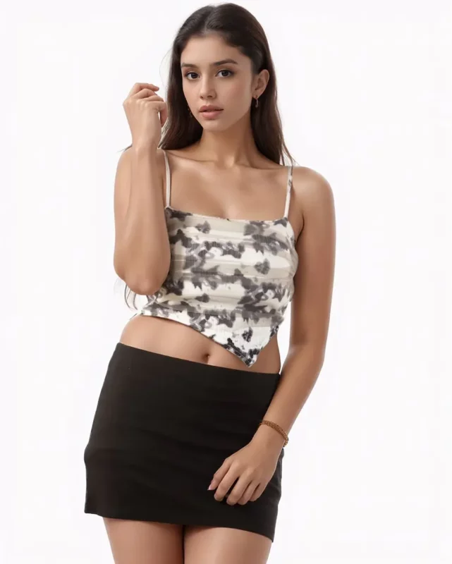 Abstract Monochrome Tie-Dye Crop Camisole Top