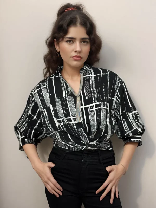 ₹850.00Black & White Abstract Print Button-Up Shirt