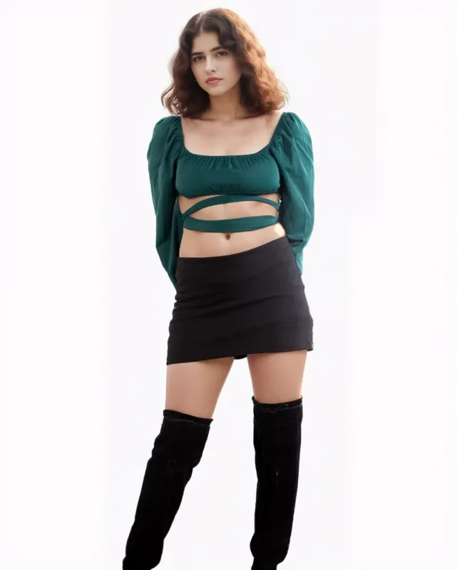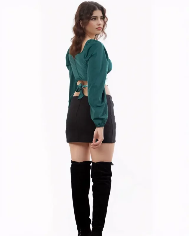 ₹750.00Emerald Green Puff Sleeve Wrap Crop Top