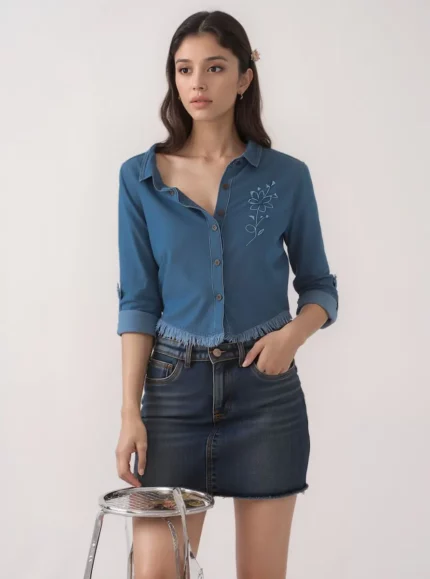 Elegant Black One-Shoulder Top with Floral Appliqué