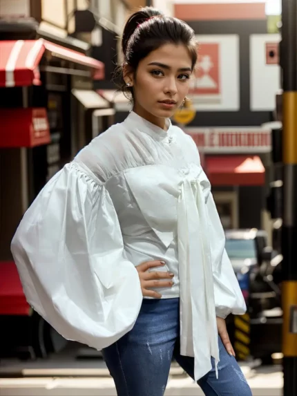 Elegant White Balloon Sleeve Tie-Up Blouse